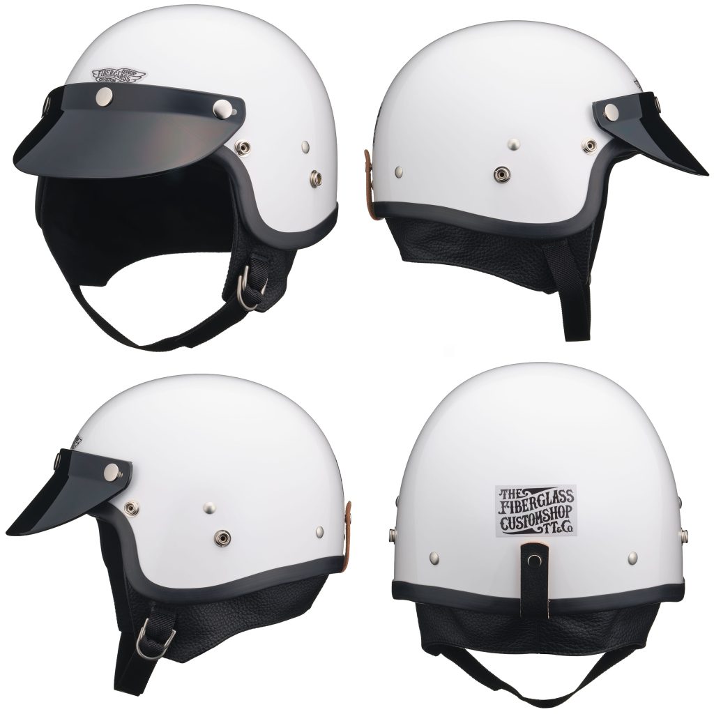 ビンテージヘルメットは年代物のため同じように使うことはできませんが、現代に作られたFiberGlass Customshopが手掛けるヘルメットは強度に優れ、新品で当時の雰囲気を手元で楽しむ事ができるヘルメットです。