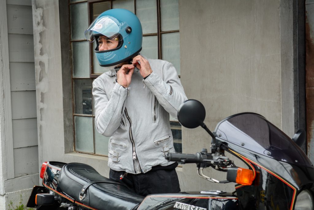 「自分は普段からビンテージ系のヘルメットを使っていて、ヘルメット自体がバイクファッションの第一印象を司る重要なアイテムだと思っています。