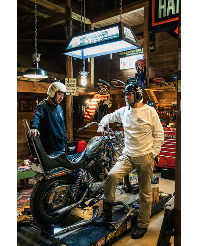 胸とバックにMOTOR CYCLE CLUBのコラボレーションアイコンをプリント。