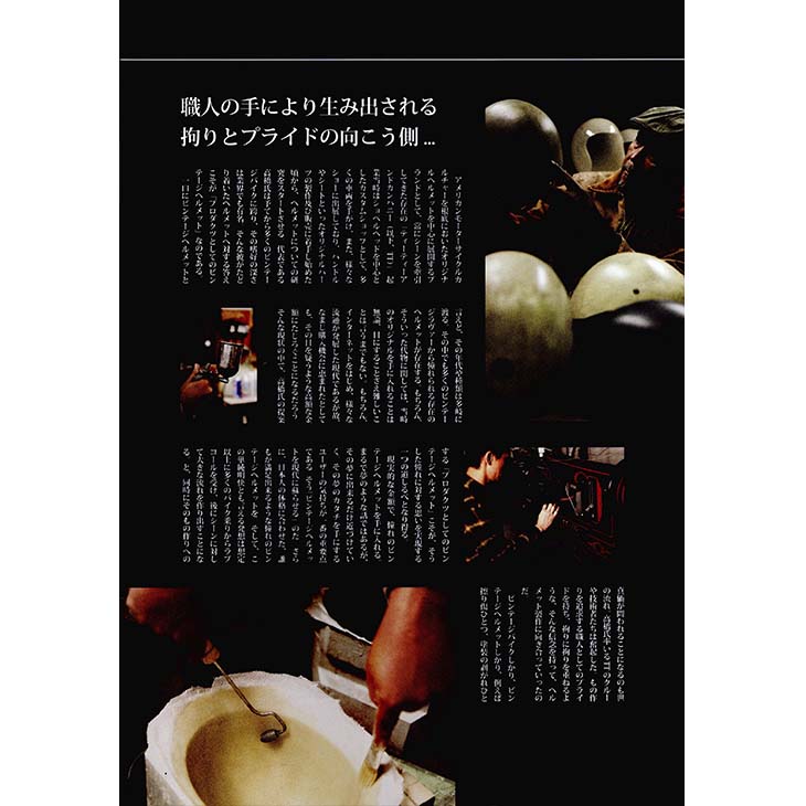 アメリカのクールなライダー達はバイクとは真反対の色使いでコーデしたり、カスタム屋時代からの経験を生かしてアドバイスしていたところ、記事ではしっかりトータルコーデの考え方が紹介されています。