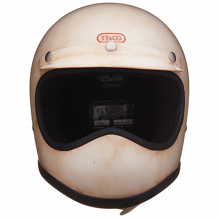 ★☆★☆★☆★☆★☆★☆★☆★☆★☆★☆★☆ 受注生産品となります。 1か月以内に出荷予定です。 遅延が発生する場合もあります。 ★☆★☆★☆★☆★☆★☆★☆★☆★☆★☆★☆ 【TOECUTTER SG/DOT MAPLEGLO WHITE VISOR】 (トゥーカッター SG/DOT メイプルグロー ホワイトバイザー) ヴィンテージをイメージしたエイジング加工モデル。 ダメージ、汚れ、艶引け、錆、などのエイジングで仕上げました。 スナップボタンのサビ加工は、バイザーなど取付けされると剥がれる可能性があります。 職人が手作業で仕上げた1点モノになりますので、それぞれ仕上げが異なります。 中古品では御座いません。 ビンテージスタイルのフルフェイスヘルメット。 3D設計のシェルは乗車用規格で最小サイズのスモールフルフェイスヘルメットです。 日本人の頭に合わせた内装と、重量1.2キログラムという軽量化を行い、快適なかぶり心地を実現。 ・標準サイズは、58~59cm (M/Lサイズ、FREEサイズ、相当) ・頭囲53~54cmの方は、 別売りの XSサイズ内装セット ・頭囲55~56cmの方は、 別売りの Sサイズ内装セット ・頭囲56~57cmの方は、 別売りの チークパッドSサイズ、サイズ調整スポンジ ・頬回りがきつい方は、 別売りの チークパッド XLサイズ をお求めください。 ※帽体はSG規格とDOT規格に適合しております。 専用バイザーを付属し、後頭部にはゴーグル留めを装備しました。 この製品は、エイジング加工の特性上、摩擦や水分、汗などにより色落ち、他の物に色移りすることがありますのでご着用の際には、十分ご注意ください。 画像の色や質感はできる限り実物に近くなるように努めておりますが お使いの環境(モニター、携帯の機種等)により異なる場合がございます。 <トゥーカッター 専用ゴーグル同時購入限定価格> トゥーカッター(革物、グラフィック含む)とトゥーカッター 専用ゴーグル同時購入の場合のみ、9,702円(税込)で販売致します。 このまま13,860円(税込)で購入頂き、受注確認後に弊社にて価格修正を行います。 ・トゥーカッター専用ゴーグルの販売ページ ・TTゴーグルモデルAの販売ページ ・バブルシールドの販売ページ ・フリップアップシールドの販売ページ ・チークパッドの販売ページ ・サイズ調整スポンジの販売ページ ・Sサイズ内装セットの販売ページ ・XSサイズ内装セットの販売ページ