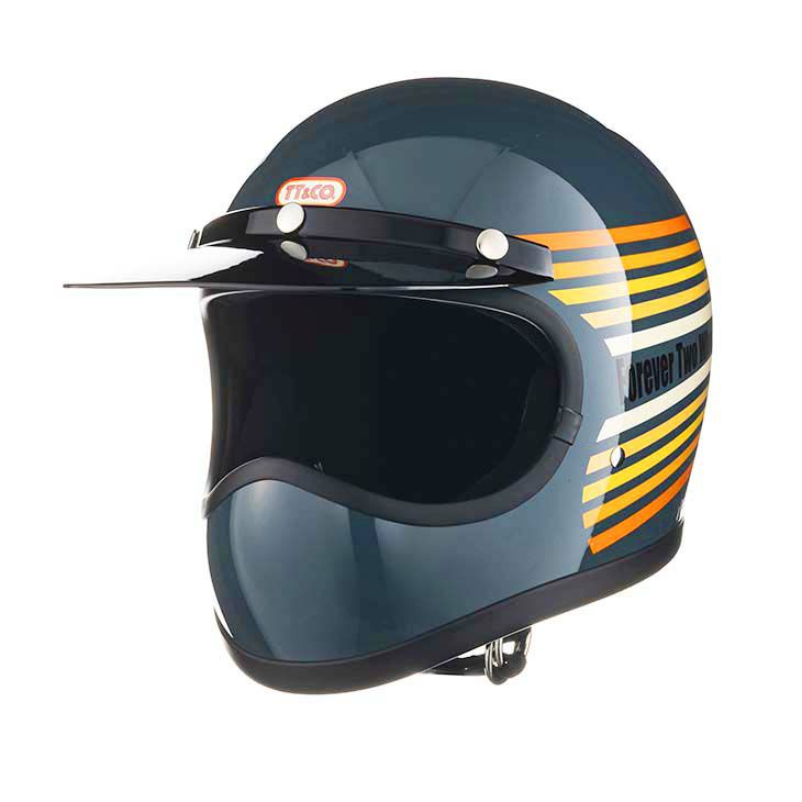 専用バイザーを付属し、後頭部にはゴーグル留めを装備しました。