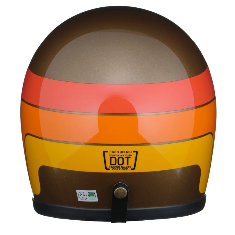 【TOECUTTER SG/DOT 70's LINE OLD GOLD】 (トゥーカッター SG/DOT セブンティーズライン オールドゴールド) トラディショナルなセブンティーズラインのグラフィックモデルです。 ビンテージスタイルのフルフェイスヘルメット。 3D設計のシェルは乗車用規格で最小サイズのスモールフルフェイスヘルメットです。 日本人の頭に合わせた内装と、重量1.2キログラムという軽量化を行い、快適なかぶり心地を実現。 ・標準サイズは、58~59cm (M/Lサイズ、FREEサイズ、相当) ・頭囲53~54cmの方は、 別売りの XSサイズ内装セット ・頭囲55~56cmの方は、 別売りの Sサイズ内装セット ・頭囲56~57cmの方は、 別売りの チークパッドSサイズ、サイズ調整スポンジ ・頬回りがきつい方は、 別売りの チークパッド XLサイズ をお求めください。 ※帽体はSG規格とDOT規格に適合しております。 専用バイザーを付属し、後頭部にはゴーグル留めを装備しました。 DOTマークの仕様変更により、後頭部にDOTマークを埋め込んだタイプをお送りする場合がございます。 その場合は画像のように後頭部についているToe CutterシールとDOTシールは貼付ございません。 こちらはお選びいただく事ができませんので、何卒ご了承ください。 画像の色や質感はできる限り実物に近くなるように努めておりますが お使いの環境(モニター、携帯の機種等)により異なる場合がございます。 <トゥーカッター 専用ゴーグル同時購入限定価格> トゥーカッター(革物、グラフィック含む)とトゥーカッター 専用ゴーグル同時購入の場合のみ、9,702円(税込)で販売致します。 このまま13,860円(税込)で購入頂き、受注確認後に弊社にて価格修正を行います。 ・トゥーカッター専用ゴーグルの販売ページ ・TTゴーグルモデルAの販売ページ ・仕様変更専用ダブルストラップの販売ページ ・バブルシールドの販売ページ ・フリップアップシールドの販売ページ ・チークパッドの販売ページ ・サイズ調整スポンジの販売ページ ・Sサイズ内装セットの販売ページ ・XSサイズ内装セットの販売ページ