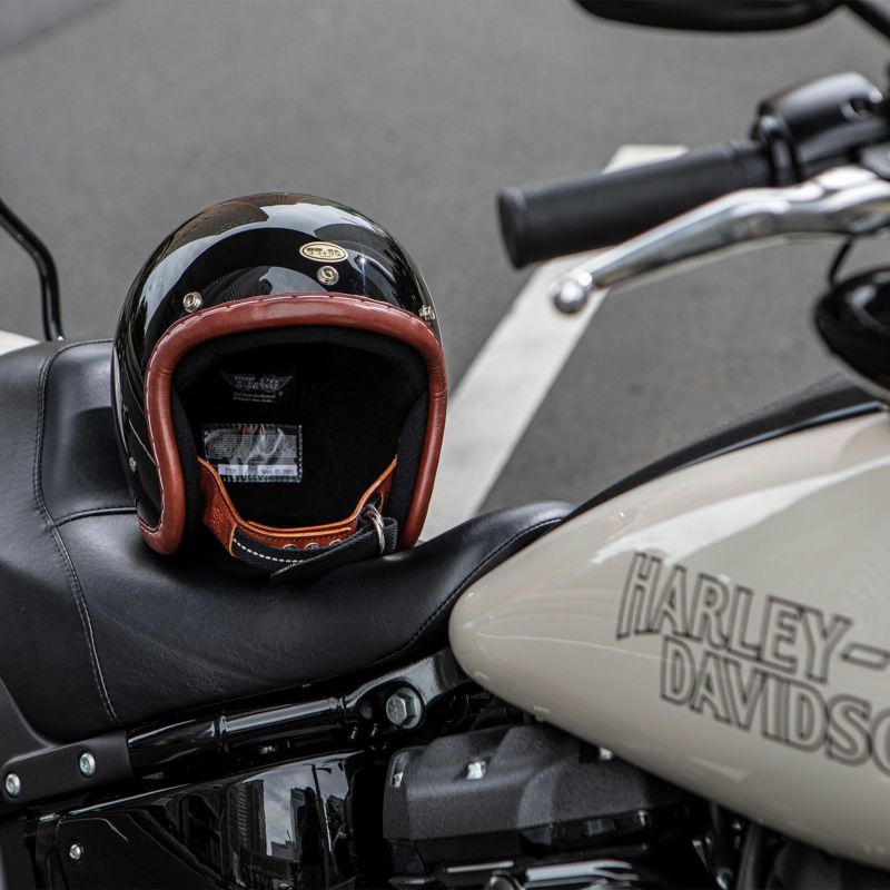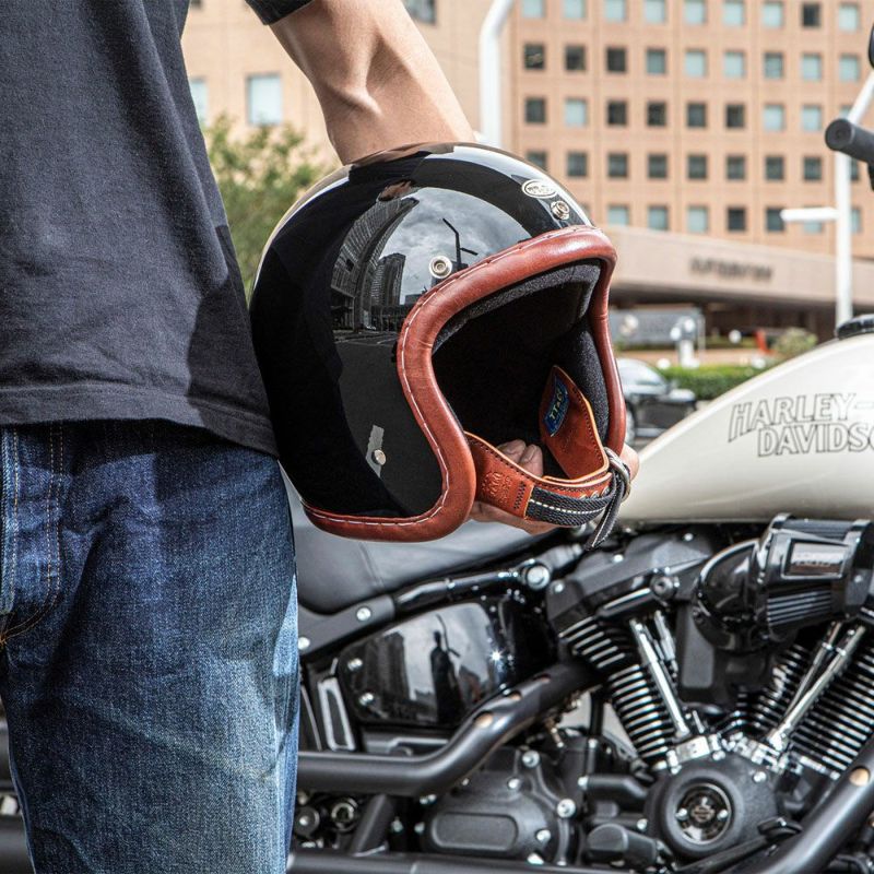 ★☆★☆★☆★☆★☆★☆★☆★☆★☆★☆★☆★☆★ 受注生産品となります。 2週間以内に出荷予定です。 遅延が発生する場合もあります。 ★☆★☆★☆★☆★☆★☆★☆★☆★☆★☆★☆★☆★ 【SUPER MAGNUM GENUINE LEATHER TRIM BROWN LEATHER BLACK】 (スーパーマグナム ジェニュインレザートリム ブラウンレザー ブラック) 1960年代のヴィンテージモデルをイメージしたレザートリム。 レザーを薄く控えめに膨らませました。 「革巻き」と親しまれ、古くはレーサー用のプロテクター部位だったと言われています。 ロウ引きされた麻糸で、シェルに貫通縫付け。 ハンドステッチで仕上げました。 日本産タンニン鞣しの牛革本ヌメ、オイルドブラウンを使用しております。 ヴィンテージの質感を再現すべく、経年変化を起こしやすい色入れを行いました。 色ムラがあり、色落ち、色剥がれ、しやすい仕上げです。 当社の商品コンセプトをご理解のもとお求め下さい。 ビンテージヘルメットの名作『500-TX』を参考に、『より目深にかぶれて、より小さく見えるシェル』を開発しました。 日本人体型にベストマッチさせた『たまご型』のスリムシェイプが最大の特徴。 クラシカルな雰囲気と、バランスの良い一体感が得られます。 ・標準サイズは、57~58cm (M/Lサイズ、FREEサイズ、相当) ・頭囲55~56cmの方は、 別売りの Sサイズ内装セット ・頭囲53~54cmの方は、 別売りの XSサイズ内装セット をお求めください。 ※帽体はSG規格とDOT規格に適合しております。 バイザーやシールドの取り付けはレザー部分に干渉するため、取付け不可もしくは外れやすくなります。 画像の色や質感はできる限り実物に近くなるように努めておりますが お使いの環境(モニター、携帯の機種等)により異なる場合がございます。 Made in Tokyo ・TTゴーグルモデルAの販売ページ ・サイズ調整スポンジの販売ページ ・Sサイズ内装セットの販売ページ ・XSサイズ内装セットの販売ページ
