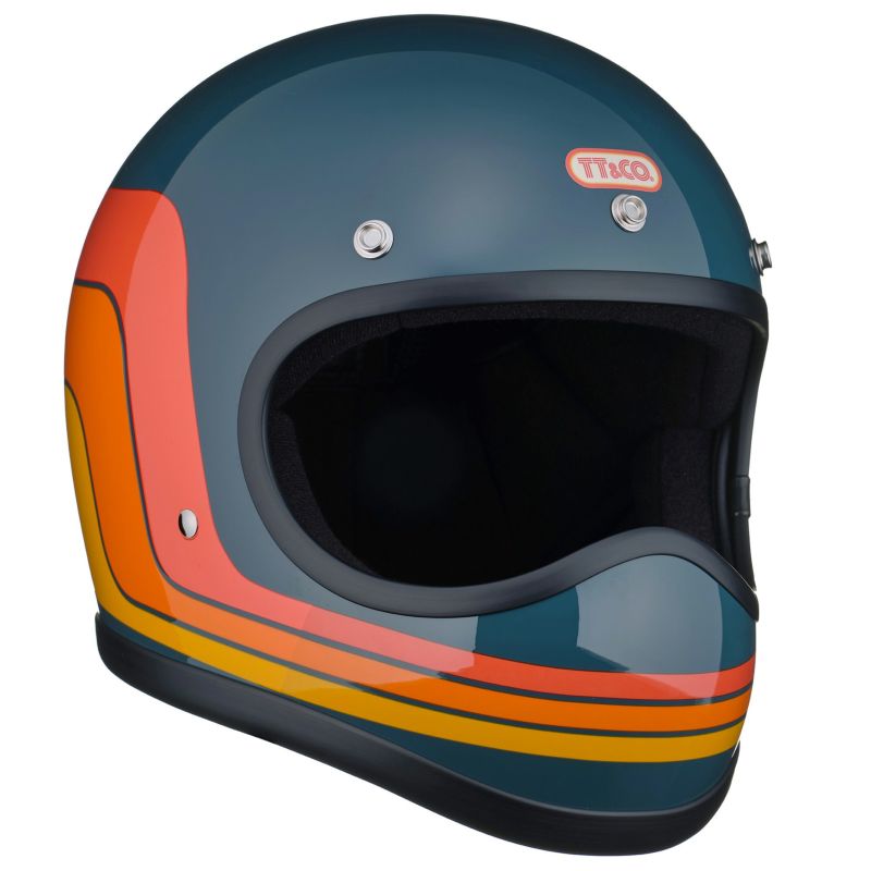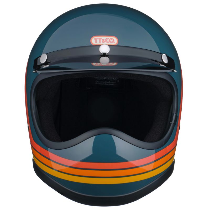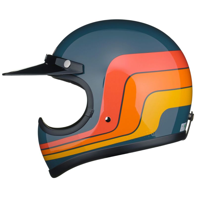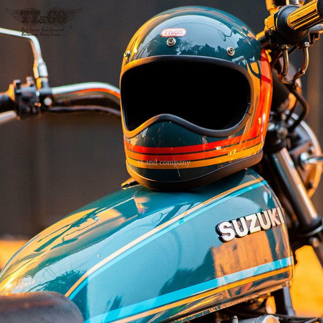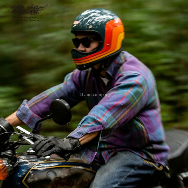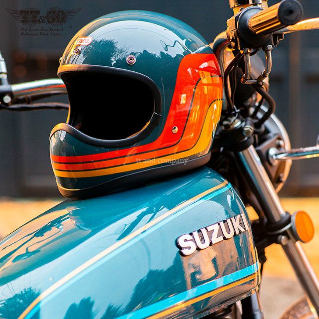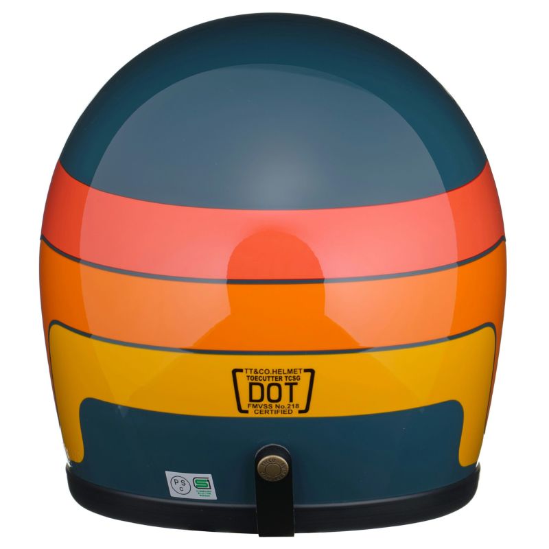 【TOECUTTER SG/DOT 70's LINE VINTAGE BLUE】 (トゥーカッター SG/DOT セブンティーズライン ヴィンテージブルー) トラディショナルなセブンティーズラインのグラフィックモデルです。 ビンテージスタイルのフルフェイスヘルメット。 3D設計のシェルは乗車用規格で最小サイズのスモールフルフェイスヘルメットです。 日本人の頭に合わせた内装と、重量1.2キログラムという軽量化を行い、快適なかぶり心地を実現。 ・標準サイズは、58~59cm (M/Lサイズ、FREEサイズ、相当) ・頭囲53~54cmの方は、 別売りの XSサイズ内装セット ・頭囲55~56cmの方は、 別売りの Sサイズ内装セット ・頭囲56~57cmの方は、 別売りの チークパッドSサイズ、サイズ調整スポンジ ・頬回りがきつい方は、 別売りの チークパッド XLサイズ をお求めください。 ※帽体はSG規格とDOT規格に適合しております。 専用バイザーを付属し、後頭部にはゴーグル留めを装備しました。 DOTマークの仕様変更により、後頭部にDOTマークを埋め込んだタイプをお送りする場合がございます。 その場合は画像のように後頭部についているToe CutterシールとDOTシールは貼付ございません。 こちらはお選びいただく事ができませんので、何卒ご了承ください。 画像の色や質感はできる限り実物に近くなるように努めておりますが お使いの環境(モニター、携帯の機種等)により異なる場合がございます。 <トゥーカッター 専用ゴーグル同時購入限定価格> トゥーカッター(革物、グラフィック含む)とトゥーカッター 専用ゴーグル同時購入の場合のみ、9,702円(税込)で販売致します。 このまま13,860円(税込)で購入頂き、受注確認後に弊社にて価格修正を行います。 ・トゥーカッター専用ゴーグルの販売ページ ・TTゴーグルモデルAの販売ページ ・仕様変更専用ダブルストラップの販売ページ ・バブルシールドの販売ページ ・フリップアップシールドの販売ページ ・チークパッドの販売ページ ・サイズ調整スポンジの販売ページ ・Sサイズ内装セットの販売ページ ・XSサイズ内装セットの販売ページ