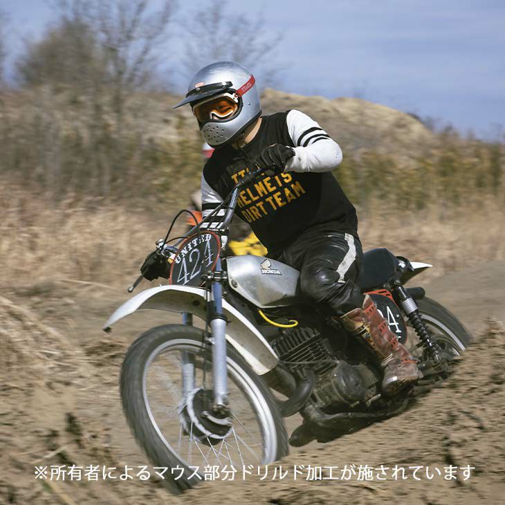 【TOECUTTER SG/DOT STANDARD SILVER METALLIC】 (トゥーカッター SG/DOT スタンダード シルバーメタリック) ビンテージスタイルのフルフェイスヘルメット。 3D設計のシェルは乗車用規格で最小サイズのスモールフルフェイスヘルメットです。 日本人の頭に合わせた内装と、重量1.2キログラムという軽量化を行い、快適なかぶり心地を実現。 ・標準サイズは、58~59cm (M/Lサイズ、FREEサイズ、相当) ・頭囲53~54cmの方は、 別売りの XSサイズ内装セット ・頭囲55~56cmの方は、 別売りの Sサイズ内装セット ・頭囲56~57cmの方は、 別売りの チークパッドSサイズ、サイズ調整スポンジ ・頬回りがきつい方は、 別売りの チークパッド XLサイズ をお求めください。 ※帽体はSG規格とDOT規格に適合しております。 同色の専用バイザーを付属し、後頭部にはゴーグル留めを装備しました。 (シルバーメタリックはブラックバイザーを付属) 専用バイザーとシェルのカラーは完全には一致しておりません。 画像の色や質感はできる限り実物に近くなるように努めておりますが お使いの環境(モニター、携帯の機種等)により異なる場合がございます。 <トゥーカッター 専用ゴーグル同時購入限定価格> トゥーカッター(革物、グラフィック含む)とトゥーカッター 専用ゴーグル同時購入の場合のみ、9,702円(税込)で販売致します。 このまま13,860円(税込)で購入頂き、受注確認後に弊社にて価格修正を行います。 ・トゥーカッター専用ゴーグルの販売ページ ・TTゴーグルモデルAの販売ページ ・仕様変更専用ダブルストラップの販売ページ ・バブルシールドの販売ページ ・フリップアップシールドの販売ページ ・チークパッドの販売ページ ・サイズ調整スポンジの販売ページ ・Sサイズ内装セットの販売ページ ・XSサイズ内装セットの販売ページ