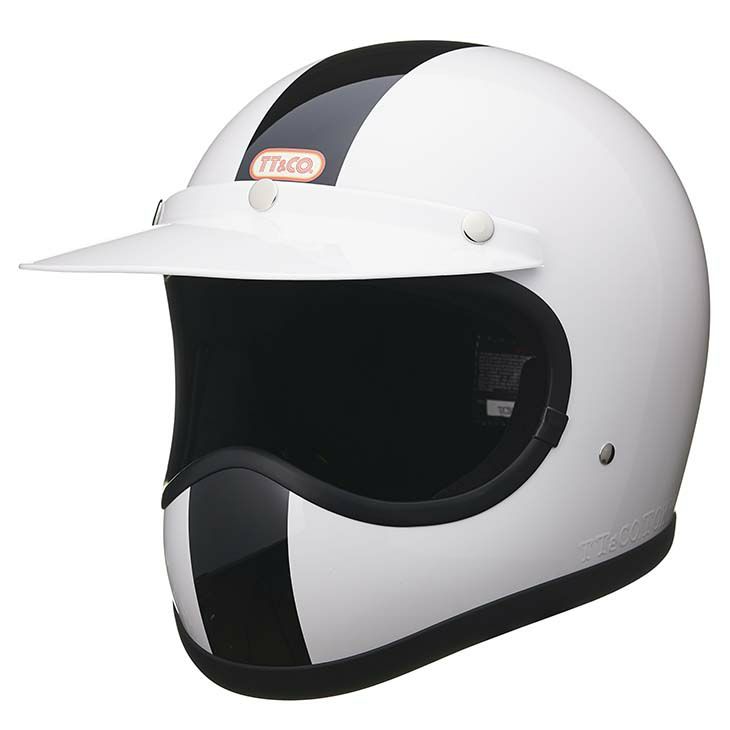 【TOECUTTER SG/DOT CENTER LINE WHITE】 (トゥーカッター SG/DOT センターライン ホワイト) トラディショナルなデザインのグラフィックヘルメット。 ビンテージスタイルのフルフェイスヘルメット。 3D設計のシェルは乗車用規格で最小サイズのスモールフルフェイスヘルメットです。 日本人の頭に合わせた内装と、重量1.2キログラムという軽量化を行い、快適なかぶり心地を実現。 ・標準サイズは、58~59cm (M/Lサイズ、FREEサイズ、相当) ・頭囲53~54cmの方は、 別売りの XSサイズ内装セット ・頭囲55~56cmの方は、 別売りの Sサイズ内装セット ・頭囲56~57cmの方は、 別売りの チークパッドSサイズ、サイズ調整スポンジ ・頬回りがきつい方は、 別売りの チークパッド XLサイズ をお求めください。 ※帽体はSG規格とDOT規格に適合しております。 専用バイザーを付属し、後頭部にはゴーグル留めを装備しました。 画像の色や質感はできる限り実物に近くなるように努めておりますが お使いの環境(モニター、携帯の機種等)により異なる場合がございます。 <トゥーカッター 専用ゴーグル同時購入限定価格> トゥーカッター(革物、グラフィック含む)とトゥーカッター 専用ゴーグル同時購入の場合のみ、9,702円(税込)で販売致します。 このまま13,860円(税込)で購入頂き、受注確認後に弊社にて価格修正を行います。 ・トゥーカッター専用ゴーグルの販売ページ ・TTゴーグルモデルAの販売ページ ・仕様変更専用ダブルストラップの販売ページ ・バブルシールドの販売ページ ・フリップアップシールドの販売ページ ・チークパッドの販売ページ ・サイズ調整スポンジの販売ページ ・Sサイズ内装セットの販売ページ ・XSサイズ内装セットの販売ページ
