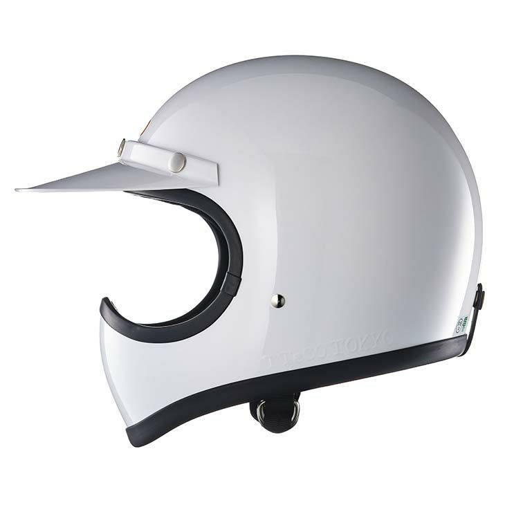 【TOECUTTER SG/DOT STANDARD WHITE】 (トゥーカッター SG/DOT スタンダード ホワイト) ビンテージスタイルのフルフェイスヘルメット。 3D設計のシェルは乗車用規格で最小サイズのスモールフルフェイスヘルメットです。 日本人の頭に合わせた内装と、重量1.2キログラムという軽量化を行い、快適なかぶり心地を実現。 ・標準サイズは、58~59cm (M/Lサイズ、FREEサイズ、相当) ・頭囲53~54cmの方は、 別売りの XSサイズ内装セット ・頭囲55~56cmの方は、 別売りの Sサイズ内装セット ・頭囲56~57cmの方は、 別売りの チークパッドSサイズ、サイズ調整スポンジ ・頬回りがきつい方は、 別売りの チークパッド XLサイズ をお求めください。 ※帽体はSG規格とDOT規格に適合しております。 同色の専用バイザーを付属し、後頭部にはゴーグル留めを装備しました。 (シルバーメタリックはブラックバイザーを付属) 専用バイザーとシェルのカラーは完全には一致しておりません。 画像の色や質感はできる限り実物に近くなるように努めておりますが お使いの環境(モニター、携帯の機種等)により異なる場合がございます。 <トゥーカッター 専用ゴーグル同時購入限定価格> トゥーカッター(革物、グラフィック含む)とトゥーカッター 専用ゴーグル同時購入の場合のみ、9,702円(税込)で販売致します。 このまま13,860円(税込)で購入頂き、受注確認後に弊社にて価格修正を行います。