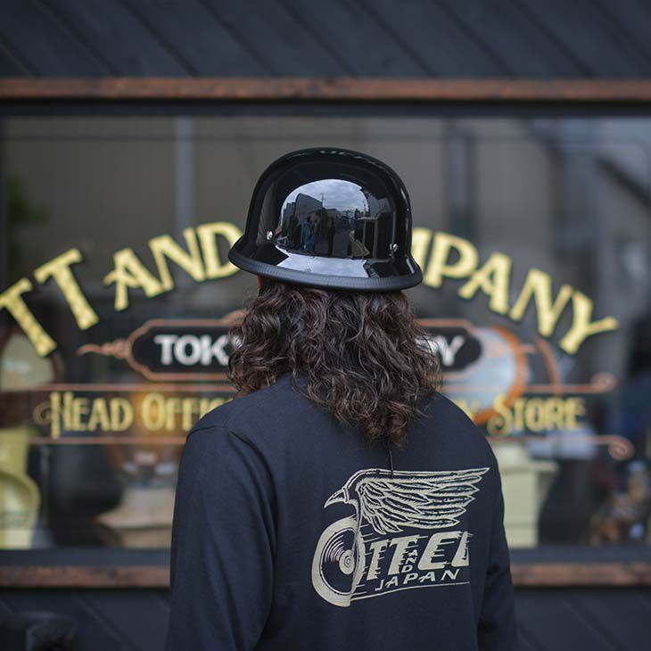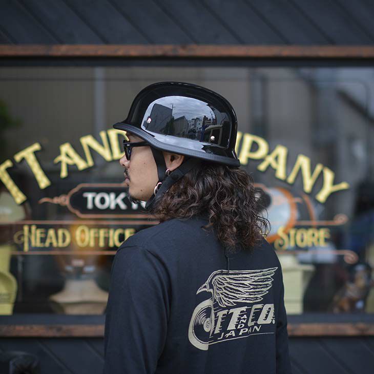 ★☆★☆★☆★☆★☆★☆★☆★☆★☆★☆★☆ 在庫切れサイズについて 次回の入荷時期は未定となります。 ★☆★☆★☆★☆★☆★☆★☆★☆★☆★☆★☆ 【USA GERMAN HALF HELMET BLACK】 (USAジャーマン ハーフヘルメット ブラック) その歴史や背景などから、CHOPPERシーンではよくチョイスされる 『ジャーマンスタイル』 短く小ぶりなツバが、サイド~バックへと流れるデザイン。 日本人の頭部に合わせて成型したシェルは、軽くて丈夫なABS樹脂製です。 巷のハーフヘルメットに見られる「マッチ棒状態」にはならず、眼深にバランスよくかぶれます。 大きく開いたY字のベルトは、耳に接触し難く、安定した装着感があります。 帽体が常に前方に傾き、眉毛ラインまで深くかぶれるように、Y字のベルトの長さを設定。 ベルトの装着にはDリングリリースを採用。 そして装着後に余ったベルトはスナップボタンで固定出来ます。 サイズは、S、M/L、XL/XXL、の3サイズ。 ・頭囲 53~55cm:S ・頭囲 56~58cm:M/L ・頭囲 59~61cm:XL/XXL 内装(インナー)によりサイズが変わります。 それぞれのサイズ毎に内装(インナー)の厚みが違います。 帽体の大きさに種類は御座いませんので、全て共通となります。 サイズにより、帽体の大きさや外観が変わることはありません。 画像の色や質感はできる限り実物に近くなるように努めておりますが お使いの環境(モニター、携帯の機種等)により異なる場合がございます。 このヘルメットは装飾用ヘルメットです。 乗車用(オートバイ用)ヘルメットでは御座いません。