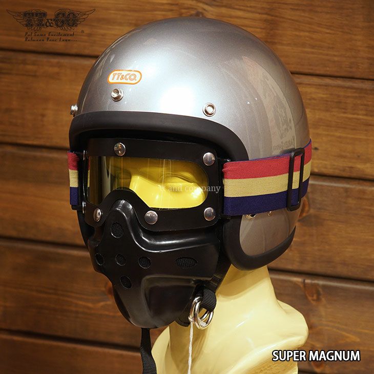 ★☆★☆★☆★☆★☆★☆★☆★☆★☆★☆★☆★☆★ 組付け作業のため、出荷までに数日ほどお時間を いただいております。 配達希望日にご注意下さい。 ★☆★☆★☆★☆★☆★☆★☆★☆★☆★☆★☆★☆★ 【RACE FACE BLACK】 (レースフェイス ブラック) ヴィンテージデザインのフェイスガード。 ジェットヘルメットにはめ込むように装着します。 スクリーンは3色付属しており、交換もスナップの脱着により簡単に行えます。 (クリア/スモーク/イエロー) ガード本体は未塗装品の為、樹脂表面に若干のシミ、傷、汚れ、があります。 予めご了承下さい。 ※眼鏡、サングラス等を着用してのご使用は出来ません。 スーパーマグナム、500TX、への装着画像アップしておりますので、参考にしてください。 【ベルトの取扱い注意点について】 下記のようにご使用された場合、ベルトが伸びてしまう恐れがございますので ご注意ください。 ・ヘルメットに装着したままなど、テンションをかけ続けて保管 ・屋外や直射日光などの環境下での保管 ・洗濯乾燥機使用時、他の衣類と引っ張り合った場合 ・過度に引っ張った場合 また、通常にご使用されていても経年劣化で伸びてしまう場合もございます。 画像の色や質感はできる限り実物に近くなるように努めておりますが お使いの環境(モニター、携帯の機種等)により異なる場合がございます。