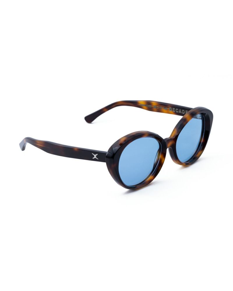 【DECADE FRANCES TORTOISE/BLUE】 1970年代のビーチルックを感じさせる、丸みを帯びたオーバーサイズのユニークな形状。 べっ甲のフレームとカラーレンズの組み合わせは、一際レトロな雰囲気を醸し出す。 フレーム: アセテート レンズ: 4ベースカーブ|CR-39|紫外線100%カット(カラーレンズを除く) フィット: ラージサイズ 付属品: マイクロファイバークロスとソフトケース レンズ幅: 58mm ブリッジ幅: 17mm テンプル長さ: 145mm