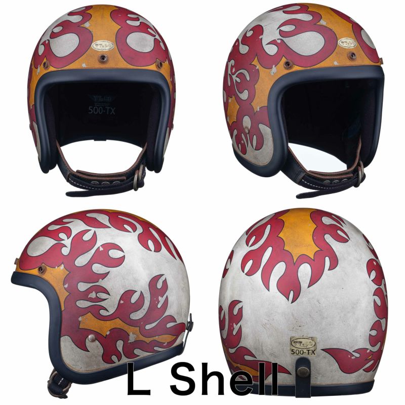 ★☆★☆★☆★☆★☆★☆★☆★☆★☆★☆★☆★☆★ 在庫切れサイズについて 次回の入荷時期は未定となります。 受注生産品となります。 1ヶ月以内に出荷予定です。 遅延が発生する場合もあります。 ★☆★☆★☆★☆★☆★☆★☆★☆★☆★☆★☆★☆★ 【500-TX Draggin’ IVORY】 (500-TX Draggin’ アイボリー) ヴィンテージをイメージしたエイジング加工モデル。 ダメージ、汚れ、艶引け、錆、などのエイジングで仕上げました。 スナップボタンのサビ加工は、バイザーなど脱着により剥がれる可能性があります。 職人が手作業で仕上げた1点モノになりますので、それぞれ仕上げが異なります。 中古品では御座いません。 サイズが異なる2種類のシェル(帽体)をラインナップ。 (2021年3月以降デリバリー開始モデルより) それぞれの頭囲、体型にベストマッチしたサイズ展開を実現しました。 小さすぎるシェルをお使いだった方 前モデルでシェイプがきつかった方 待望のフィット感で登場しました。 シェルのサイズは、Sシェル、Lシェル、の2サイズ。 内装のサイズは、XS、S/M、L/XL、XXL、の4サイズ。 <<Sシェルを使用した>> ・XSサイズ (54~55cm) ・S/Mサイズ (56~57cm) ※一般的なヘルメットより両頬のシェイプがタイトになります。 <<Lシェルを使用した>> ・L/XLサイズ (58~59cm) ・XXLサイズ (60~61cm) 固定式の内装構造と、EPS(発泡材)を採用しました。 この製品は、エイジング加工の特性上、摩擦や水分、汗などにより色落ち、他の物に色移りすることがありますのでご着用の際には、十分ご注意ください。 画像の色や質感はできる限り実物に近くなるように努めておりますが お使いの環境(モニター、携帯の機種等)により異なる場合がございます。 このヘルメットは装飾用ヘルメット(ファッションヘルメット)です。 乗車用(オートバイ用)ヘルメットでは御座いません。