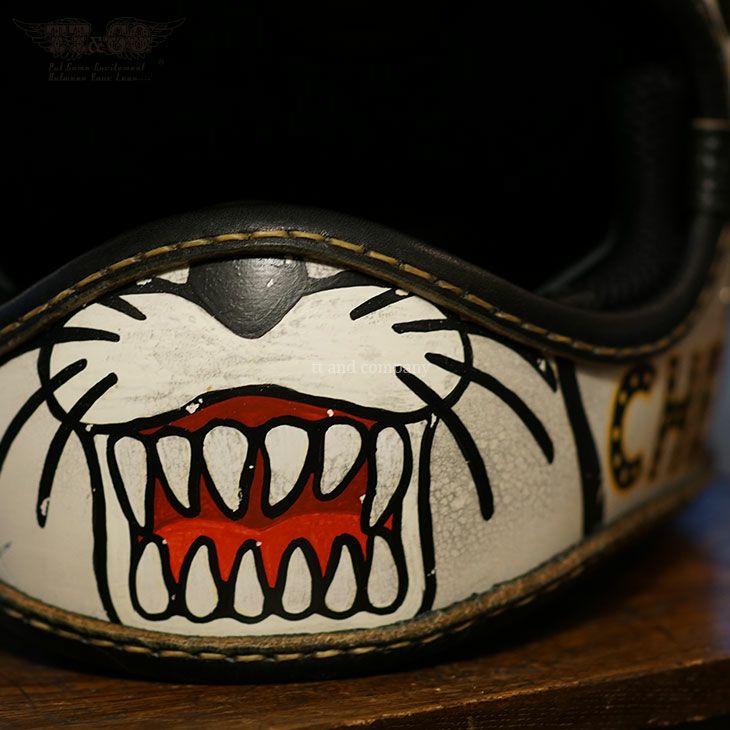 ★☆★☆★☆★☆★☆★☆★☆★☆★☆★☆★☆ 完売いたしました。 ★☆★☆★☆★☆★☆★☆★☆★☆★☆★☆★☆ 【TOECUTTER Cheetah Custom Cycles. ONLY ONE 】 (トゥーカッター Cheetah Custom Cycles. オンリーワン (シリアルナンバー001)) トゥーカッター を使い、Cheetahさんが全面にハンドペイントしました。 仕上げはトリムに本革を縫い付けた レザーリムショット仕様に。 厚革を手縫いで縫い付けました。 <<サイズ目安>> Sサイズ 頭囲56cm迄 M/Lサイズ 頭囲58cm迄 XL/XXLサイズ 頭囲60cm迄 このヘルメットは装飾用ヘルメットです。 乗車用(オートバイ用)ヘルメットでは御座いません。 Made in Tokyo
