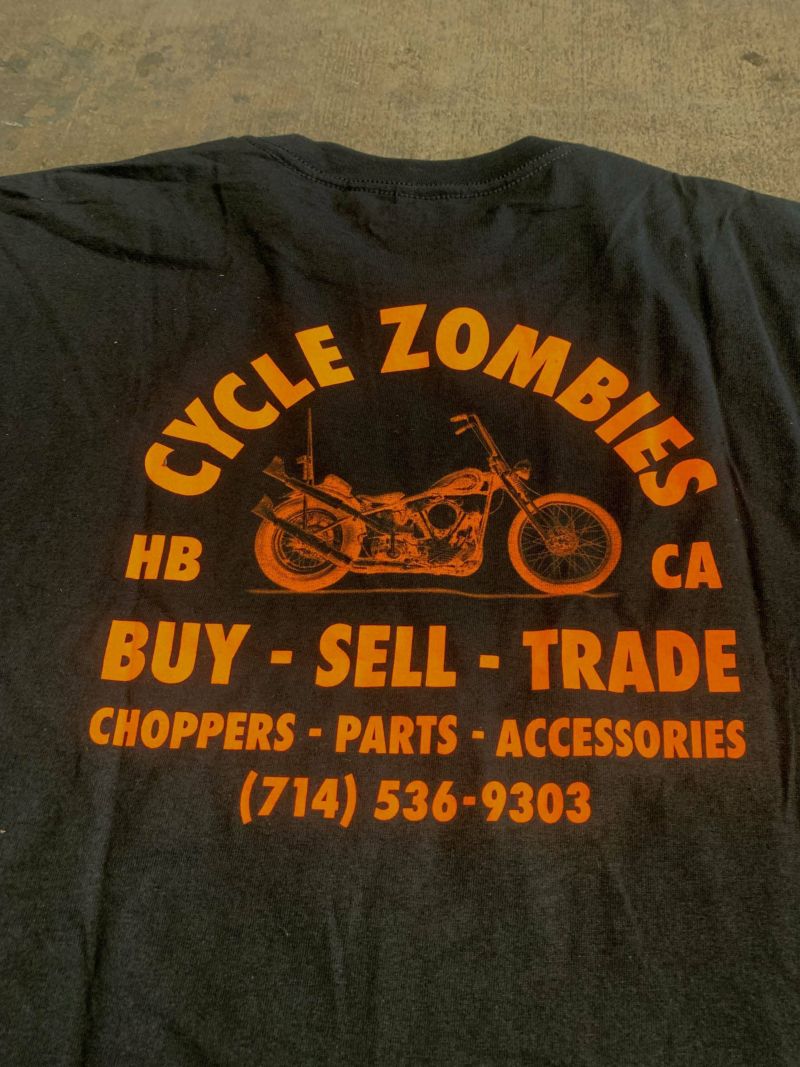 "Everyday" T-Shirt 100%コットンのしっかりとした生地に、スタンダードフィットのタフなボディ。 着るほどに馴染み、ヴィンテージの風合いが楽しめるTシャツです。 背面には、ヴィンテージチョッパーのイラストを中心に構成された、グラフィックを大胆に配置。 全体はビビッドなオレンジプリントで構成され、黒ボディに映える無骨な仕上がり。 Cycle Zombiesらしい存在感ある一枚。 サイズはS~XLまで展開。 一枚でも重ね着でも、季節を問わず活躍する万能なアイテムです。 <<サイズ>> Sサイズ 身丈67cm 身幅47cm 袖丈35cm Mサイズ 身丈72cm 身幅50cm 袖丈39cm Lサイズ 身丈78cm 身幅56cm 袖丈43cm XLサイズ 身丈81cm 身幅61cm 袖丈48cm 多少の誤差はご了承ください。 画像の色や質感はできる限り実物に近くなるように努めておりますが お使いの環境(モニター、携帯の機種等)により異なる場合がございます。