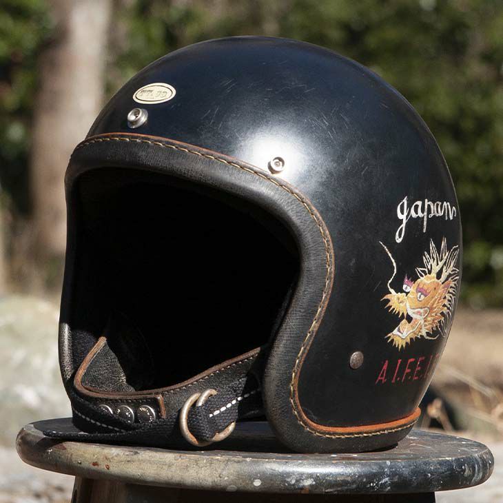 ★☆★☆★☆★☆★☆★☆★☆★☆★☆★☆★☆★☆★ 受注生産品となります。 2ヶ月以内に出荷予定です。 遅延が発生する場合もあります。 ★☆★☆★☆★☆★☆★☆★☆★☆★☆★☆★☆★☆★ 【SUPER MAGNUM DISTORTION SERIOUS RS DRAGON BLACK】 (スーパーマグナム ディストーション シリアス RS ドラゴン ブラック) ヴィンテージをイメージしたエイジング加工モデル。 クラック、ダメージ、汚れ、艶引け、錆、などのエイジングで仕上げました。 職人が手作業で仕上げた1点モノになりますので、それぞれ仕上げが異なります。 中古品では御座いません。 極厚の本革を、極太シニュー糸で、シェルに貫通縫付け。 当社職人が一針ずつ手縫いで仕上げております。 銀面をリアルに割った特殊な鞣しの牛革、リアルクラックブラックを使用しております。 ヴィンテージの質感を再現すべく、経年変化を起こしやすい色入れを行いました。 色ムラがあり、色落ち、色剥がれ、銀面剥がれ、銀面キレ、しやすい仕上げです。 当社の商品コンセプトをご理解のもとお求め下さい。 ビンテージヘルメットの名作『500-TX』を参考に、『より目深にかぶれて、より小さく見えるシェル』を開発しました。 日本人体型にベストマッチさせた『たまご型』のスリムシェイプが最大の特徴。 クラシカルな雰囲気と、バランスの良い一体感が得られます。 ・標準サイズは、57~58cm (M/Lサイズ、FREEサイズ、相当) ・頭囲55~56cmの方は、 別売りの Sサイズ内装セット ・頭囲53~54cmの方は、 別売りの XSサイズ内装セット をお求めください。 ※帽体はSG規格とDOT規格に適合しております。 バイザーやシールドの取り付けはレザー部分に干渉するため、取付け不可もしくは外れやすくなります。 この製品は、エイジング加工の特性上、摩擦や水分、汗などにより色落ち、他の物に色移りすることがありますのでご着用の際には、十分ご注意ください。 画像の色や質感はできる限り実物に近くなるように努めておりますが お使いの環境(モニター、携帯の機種等)により異なる場合がございます。 Made in Tokyo ・TTゴーグルモデルAの販売ページ ・サイズ調整スポンジの販売ページ ・Sサイズ内装セットの販売ページ ・XSサイズ内装セットの販売ページ