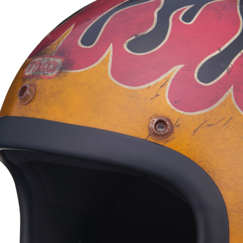 ★☆★☆★☆★☆★☆★☆★☆★☆★☆★☆★☆★☆★ 受注生産品となります。 2週間以内に出荷予定です。 遅延が発生する場合もあります。 ★☆★☆★☆★☆★☆★☆★☆★☆★☆★☆★☆★☆★ 【SUPER MAGNUM VD-FIRE BLACK Aging type】 (スーパーマグナム VD-ファイヤー ブラック エイジングタイプ) エイジング加工したモデルです。 職人が手作業で仕上げた1点モノになりますので、それぞれ仕上げが異なります。 中古品では御座いません。 ビンテージヘルメットの名作『500-TX』を参考に、『より目深にかぶれて、より小さく見えるシェル』を開発しました。 日本人体型にベストマッチさせた『たまご型』のスリムシェイプが最大の特徴。 クラシカルな雰囲気と、バランスの良い一体感が得られます。 ・標準サイズは、57~58cm (M/Lサイズ、FREEサイズ、相当) ・頭囲55~56cmの方は、 別売りの Sサイズ内装セット ・頭囲53~54cmの方は、 別売りの XSサイズ内装セット をお求めください。 ※帽体はSG規格とDOT規格に適合しております。 あご紐ベルトは、Dリング固定式です。 後頭部にはゴーグルストッパーも装備しております。 お気に入りのサングラスやバイザー、汎用ゴーグルや各シールドなど幅広いスタイルを楽しめます。 この製品は、エイジング加工の特性上、摩擦や水分、汗などにより色落ち、他の物に色移りすることがありますのでご着用の際には、十分ご注意ください。 画像の色や質感はできる限り実物に近くなるように努めておりますが お使いの環境(モニター、携帯の機種等)により異なる場合がございます。 ・TTゴーグルモデルAの販売ページ ・バブルシールドの販売ページ ・フリップアップシールドの販売ページ ・サイズ調整スポンジの販売ページ ・Sサイズ内装セットの販売ページ ・XSサイズ内装セットの販売ページ