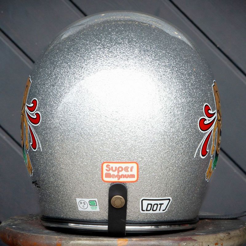 ★☆★☆★☆★☆★☆★☆★☆★☆★☆★☆★☆ 完売いたしました ★☆★☆★☆★☆★☆★☆★☆★☆★☆★☆★☆ SUPER MAGNUM Mr.G ONLYSIX 001 SILVER (スーパーマグナム Mr.G オンリー6 シルバー (シリアルナンバー001)) Mr.G氏にハンドペイントして頂いた各色2個限定モデルです。 ハワイの神像”Tiki”が左右にペイントされている。 ・Mr.G 九州をメインに活動しているピンストライパー。 HOT RODに精通したLowbrowデザインを得意とし、 国内のみならず、海外でも多くの支持を得ている。 サイズは、57-58cm(M/Lサイズ、FREEサイズ、相当) 57cm以下の方は、専用インナー XSサイズ内装(53-54cm) Sサイズ内装(55-56cm) を別途お求めください。 帽体はSG規格(PSC)とDOT規格に適合した乗車用ヘルメットです。