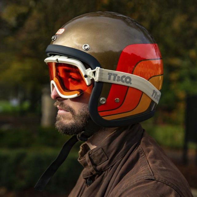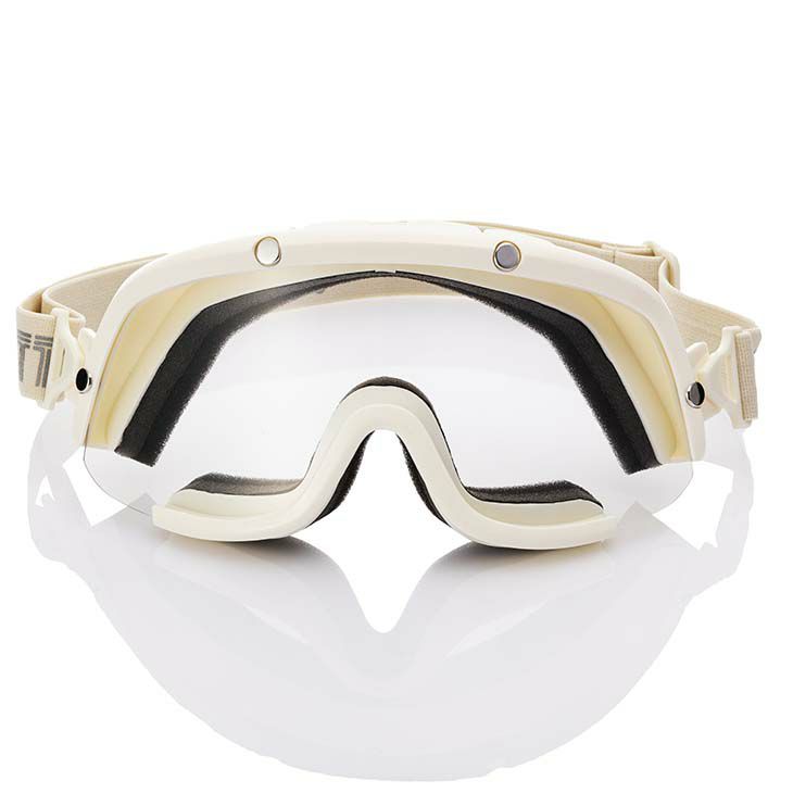 【TT GOGGLES MODEL A IVORY】 (TTゴーグル モデルA アイボリー) ヴィンテージゴーグルをサンプリングし、細部にまで拘って完成したゴーグルとなっています。 クリアレンズのみ付属 レンズには ・UVカット ・傷がつきにくい、アンチスクラッチ 各表面処理が施されています。 使用には問題の無い、チリゴミ、タレ、ムラ、キズ、などあります。 ベルトのロゴは光を反射するリフレクター機能付。 レンズ / ベルト / ノーズパッドには 各カラーバリエーションをご用意しておりますので、 お好みでカラーコディネートしていただけます。 別途お求め下さい。 2023年2月9日以前に販売していた製品より一部仕様変更あり 部品の互換性がございませんので、ご注意ください。 【ベルトの取扱い注意点について】 下記のようにご使用された場合、ベルトが伸びてしまう恐れがございますので ご注意ください。 ・ヘルメットに装着したままなど、テンションをかけ続けて保管 ・屋外や直射日光などの環境下での保管 ・洗濯乾燥機使用時、他の衣類と引っ張り合った場合 ・過度に引っ張った場合 また、通常にご使用されていても経年劣化で伸びてしまう場合もございます。 画像の色や質感はできる限り実物に近くなるように努めておりますが お使いの環境(モニター、携帯の機種等)により異なる場合がございます。 レンズ交換方法はこちら