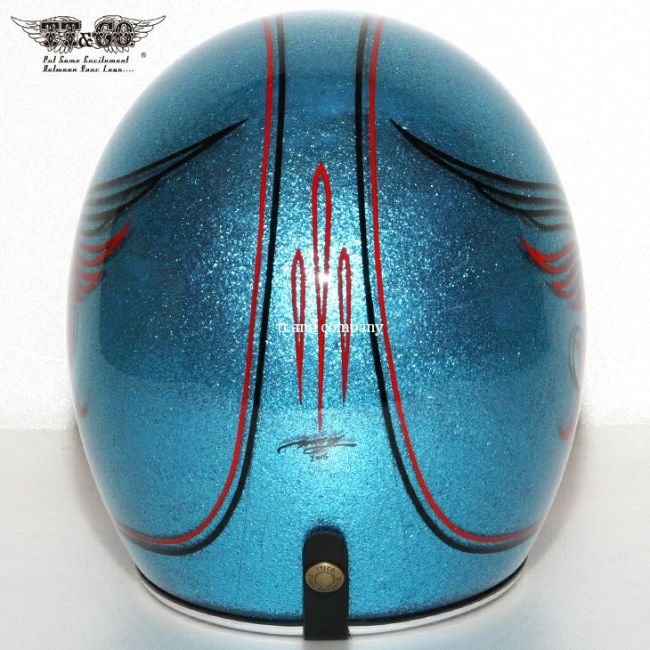 ★☆★☆★☆★☆★☆★☆★☆★☆★☆★☆★☆ 完売いたしました。 ★☆★☆★☆★☆★☆★☆★☆★☆★☆★☆★☆ 500-TX CLEAR SHELL Mr.G ONLY ONE SHOT 03 (500-TX クリアシェル Mr.G オンリーワンショット 03) ヴィンテージをイメージした、クリアシェルシリーズ。 Mr.Gさんにピンストライプして頂いた1個限定モデルです。 クリアシェルの内側にはフレーク塗装を行い、クリアシェルの外側にピントストライプを。 仕上げにもクリア塗装をしています。 <<サイズ目安>> XSサイズ 頭囲54cm迄 Sサイズ 頭囲56cm迄 M/Lサイズ 頭囲58cm迄 XL/XXLサイズ 頭囲60cm迄 あご紐ストラップは、ブラックレザー/アイボリーレザー からお選び下さい。 このヘルメットは装飾用ヘルメットです。 乗車用(オートバイ用)ヘルメットでは御座いません。 Mr.G 九州をメインに活動しているピンストライパー。 HOT RODに精通したLowbrowデザインを得意とし、 国内のみならず、海外でも多くの支持を得ている。 この限定1個のオンリーワンショットシリーズは、随時展開してまいります。