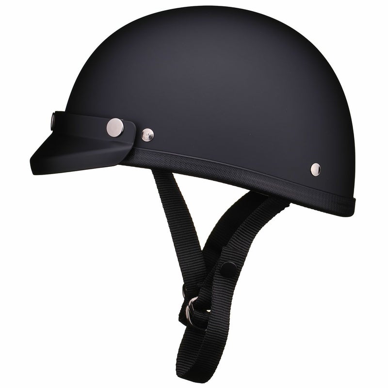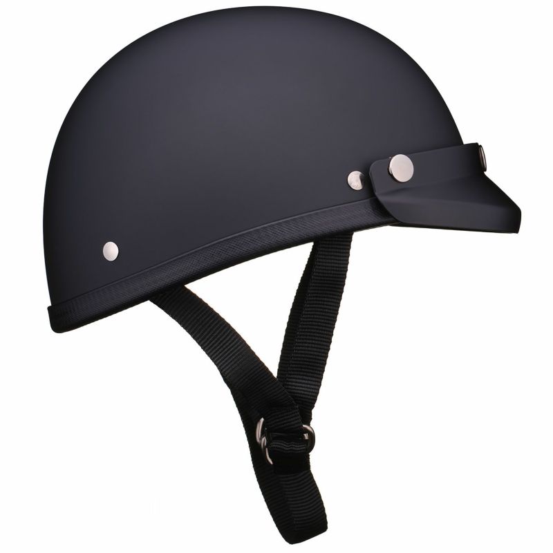 ★☆★☆★☆★☆★☆★☆★☆★☆★☆★☆★☆★☆★ 在庫切れサイズについて 次回の入荷時期は未定となります。 ★☆★☆★☆★☆★☆★☆★☆★☆★☆★☆★☆★☆★ 【EAGLE ROAD HALF HELMET MATT BLACK WITH MINI VISOR MATT BLACK】 (イーグルロード マットブラックミニバイザー付 ハーフヘルメット マットブラック) ヴィンテージタイプのオリジナルバイザーをセットしました。 取り外し可能な、スナップボタン式。 ヴィンテージヘルメットのフォームをサンプリングし、日本人の頭部に合わせて開発しました。 「マッチ棒状態」にならず、深くバランスよくかぶれます。 金型成型により射出されたシェルは、軽くて丈夫なABS樹脂製です。 大きく開いたY字のベルトは、耳に接触し難く、安定した装着感があります。 帽体が常に前方に傾き、眉毛ラインまで深くかぶれるように、Y字のベルトの長さを設定。 ベルトの装着には昔ながらのDリングリリースを採用。 そして装着後に余ったベルトはスナップボタンで固定出来ます。 サイズは、S/M、L/XL、の2サイズ。 ・S/M :頭囲 (54~56cm) ・L/XL:頭囲 (57~59cm) 内装(インナー)によりサイズが変わります。 それぞれのサイズ毎に内装(インナー)の厚みが違います。 帽体の大きさに種類は御座いませんので、全て共通となります。 サイズにより、帽体の大きさや外観が変わることはありません。 バイザーは、未塗装品の為、樹脂表面に若干のシミ、傷、汚れ、があります。 予めご了承下さい。 取り外し方や、取り外し頻度により、スナップが破損することがあります。 スナップの修理は無償で行いますので、お気軽にお問い合わせ下さい。 画像の色や質感はできる限り実物に近くなるように努めておりますが お使いの環境(モニター、携帯の機種等)により異なる場合がございます。 このヘルメットは装飾用ヘルメットです。 乗車用(オートバイ用)ヘルメットでは御座いません。
