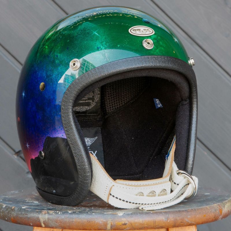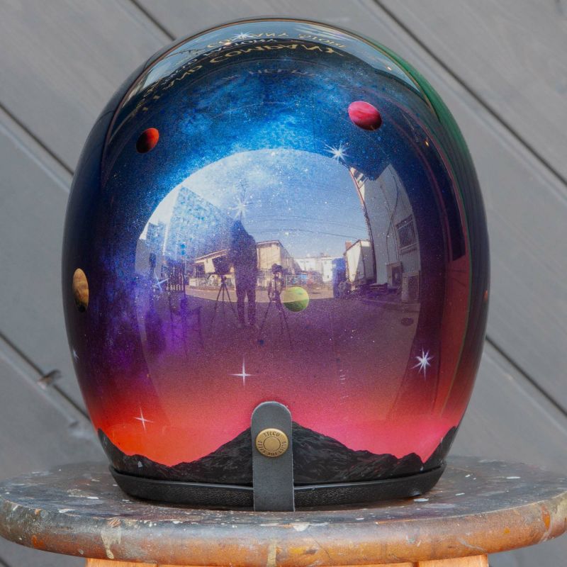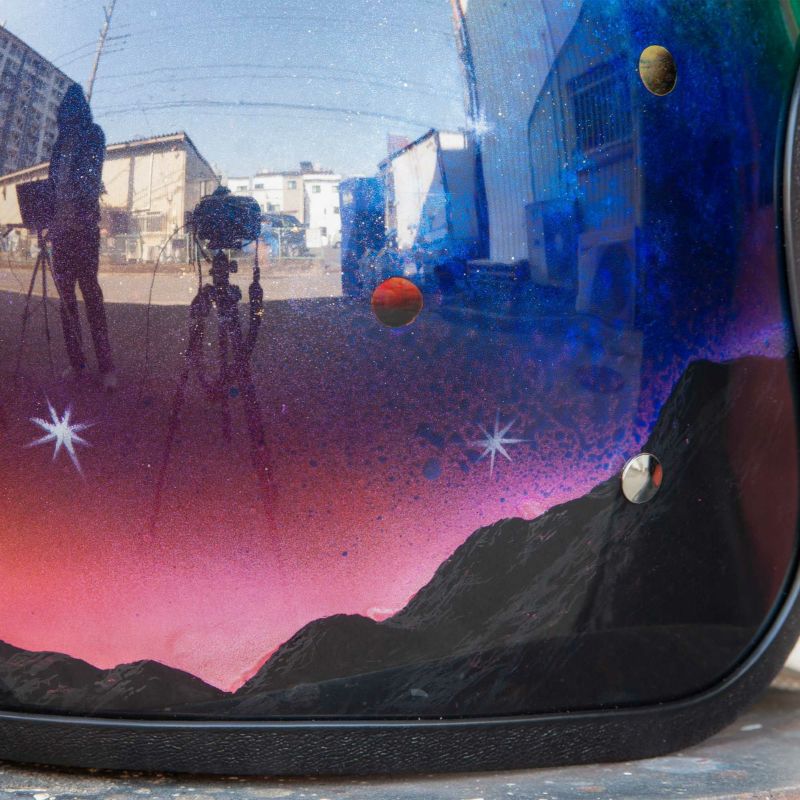 ポリカーボネートのクリアーシェルに 裏から何重も塗料やエアーブラシを重ねて、自然や宇宙を表現しています。