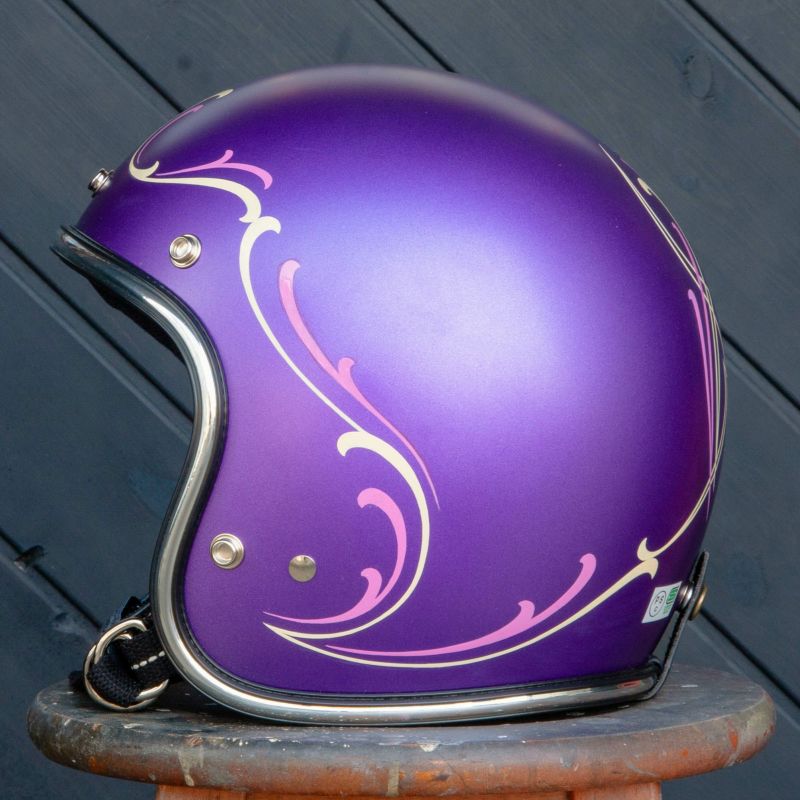 ★☆★☆★☆★☆★☆★☆★☆★☆★☆★☆★☆ 完売いたしました ★☆★☆★☆★☆★☆★☆★☆★☆★☆★☆★☆ SUPER MAGNUM Mr.G ONLYONE 003 スーパーマグナム Mr.G オンリーワン (シリアルナンバー003) Mr.G氏にハンドペイントして頂いた限定モデルです。 カーリー系(丸まっている様な)のピンストライプを描いております。 ・Mr.G 九州をメインに活動しているピンストライパー。 HOT RODに精通したLowbrowデザインを得意とし、 国内のみならず、海外でも多くの支持を得ている。 サイズは、57-58cm(M/Lサイズ、FREEサイズ、相当) 57cm以下の方は、専用インナー XSサイズ内装(53-54cm) Sサイズ内装(55-56cm) を別途お求めください。 帽体はSG規格(PSC)とDOT規格に適合した乗車用ヘルメットです。 画像の色や質感はできる限り実物に近くなるように努めておりますが お使いの環境(モニター、携帯の機種等)により異なる場合がございます。