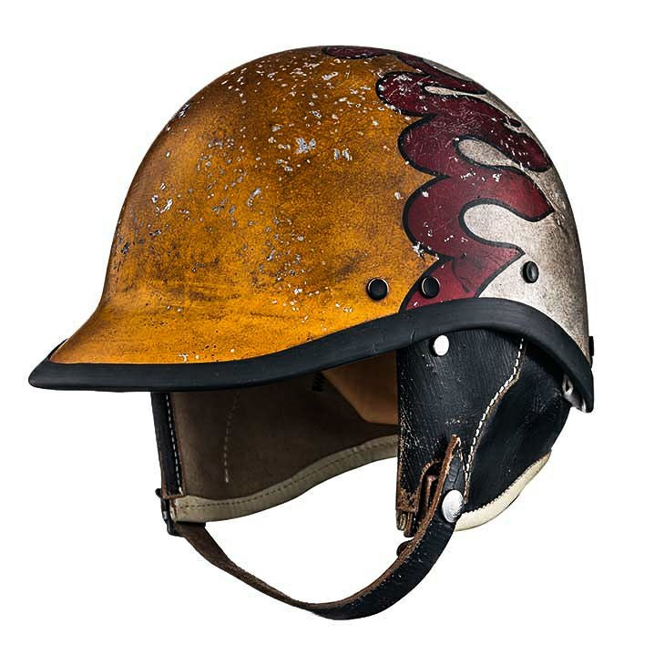 ★☆★☆★☆★☆★☆★☆★☆★☆★☆★☆★☆ 完売いたしました。 ★☆★☆★☆★☆★☆★☆★☆★☆★☆★☆★☆ Fiberglass Exposed ONLY ONE 015 (ファイバーグラス エクスポーズド Hiro パティーナアートスタジオ オンリーワン 015) 当時の塗装が60-70年という長い年月の間に、収縮を繰り返し経年劣化によりファイバーグラスのクロス目が露出する様をリアルに再現しました。 シェルは、Made in Tokyo Line.で復刻した、McHal社のクラブスターを使用しました。 <<サイズ>> S/Mサイズ (55-56cm) L/XLサイズ(57-58cm) このヘルメットは装飾用ヘルメットです。 乗車用(オートバイ用)ヘルメットでは御座いません。 ピンストライプ:JETWRENCH ArtStudio ファイヤーペイント: Hiro Made in Tokyo our Studio.
