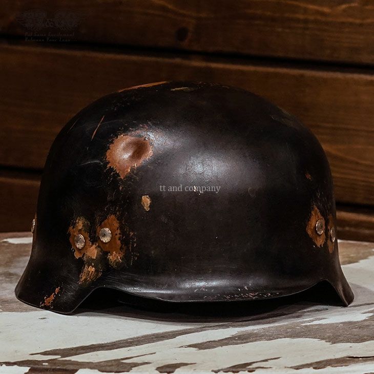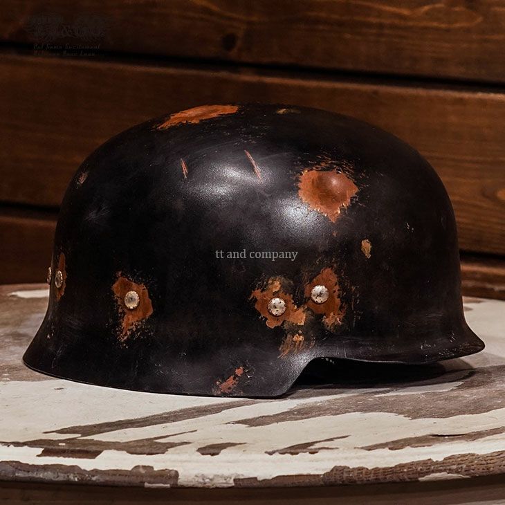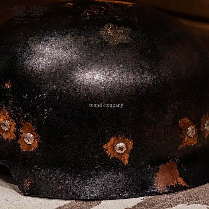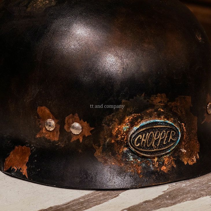 ★☆★☆★☆★☆★☆★☆★☆★☆★☆★☆★☆ 完売いたしました。 ★☆★☆★☆★☆★☆★☆★☆★☆★☆★☆★☆ Real Rusty HIRO PATINA ART STUDIO ONLY ONE 001 (リアルラスティー Hiro パティーナアートスタジオ オンリーワン 001) Hiro自らが、錆、ダメージ、汚れ、艶引け、などのエイジング加工したモデルです。 シェルは、Made in Tokyo Line.で復刻した、チョッパーヘルメット(スチール製)を使用しました。 <<サイズ>> S/Mサイズ (55-57cm) L/XLサイズ(58-60cm) ※吊り天井は紐でフィット感を調整する、古典的な仕様になるため、ルーズなサイズ感となります 。 このヘルメットは装飾用ヘルメットです。 乗車用(オートバイ用)ヘルメットでは御座いません。 リアルな錆加工のため、衣類への付着、錆の進行があります。 予めご了承の上お買い求めください。 By Vintage Cracked Paint Artist Hiro Takahashi