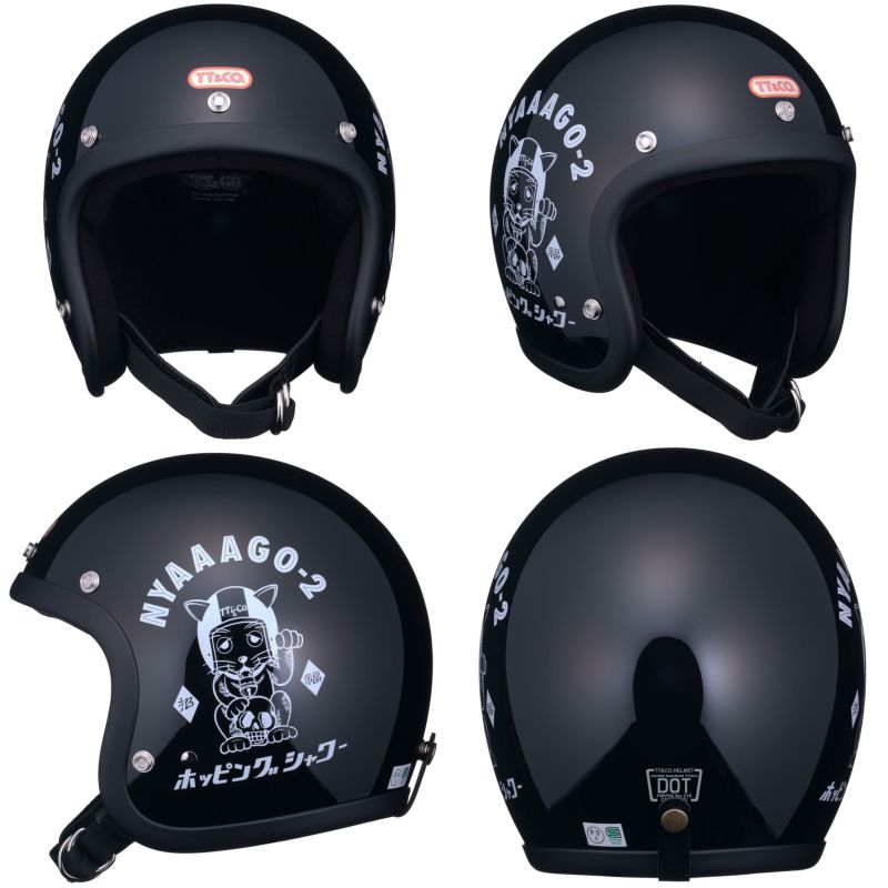 【SUPER MAGNUM NYAAGO 2】 (スーパーマグナム NYAAGO 2) "FLYING NYAAGO"に続く、第2弾モデル "NYAAGO 2" が登場。 カラーはアイボリーとブラック。 HOPPING SHOWERさんにデザインを依頼した、グラフィックヘルメット。 ビンテージヘルメットの名作『500-TX』を参考に、『より目深にかぶれて、より小さく見えるシェル』を開発しました。 日本人体型にベストマッチさせた『たまご型』のスリムシェイプが最大の特徴。 クラシカルな雰囲気と、バランスの良い一体感が得られます。 ・標準サイズは、57~58cm (M/Lサイズ、FREEサイズ、相当) ・頭囲55~56cmの方は、 別売りの Sサイズ内装セット ・頭囲53~54cmの方は、 別売りの XSサイズ内装セット をお求めください。 ※帽体はSG規格とDOT規格に適合しております。 あご紐ベルトは、Dリング固定式です。 後頭部にはゴーグルストッパーも装備しております。 お気に入りのサングラスやバイザー、汎用ゴーグルや各シールドなど幅広いスタイルを楽しめます。 DOTマークの仕様変更により、後頭部にDOTマークを埋め込んだタイプをお送りする場合がございます。 その場合は画像のように後頭部についているSuper MagnumシールとDOTシールは貼付ございません。 こちらはお選びいただく事ができませんので、何卒ご了承ください。 画像の色や質感はできる限り実物に近くなるように努めておりますが お使いの環境(モニター、携帯の機種等)により異なる場合がございます。 ・TTゴーグルモデルAの販売ページ ・バブルシールドの販売ページ ・フリップアップシールドの販売ページ ・サイズ調整スポンジの販売ページ ・Sサイズ内装セットの販売ページ ・XSサイズ内装セットの販売ページ