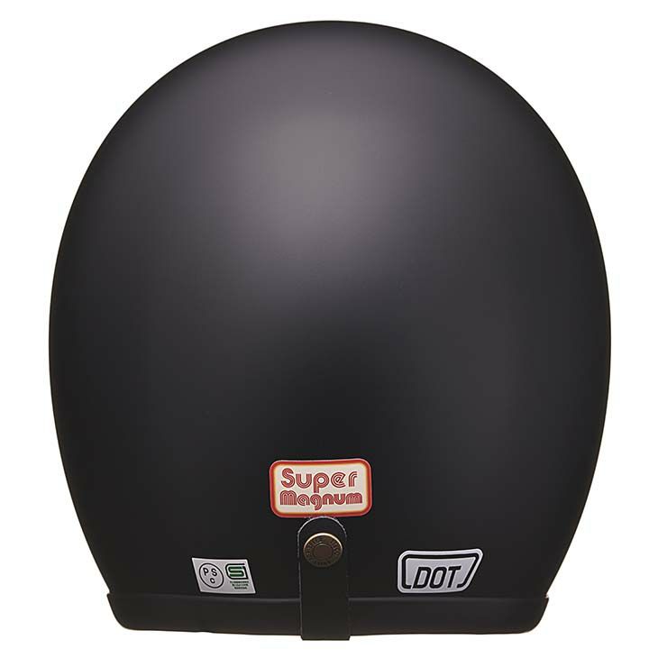 【SUPER MAGNUM DOUBLE STRAP BLACK LEATHER MATT BLACK】 (スーパーマグナム ダブルストラップ仕様 ブラックレザーマットブラック) 日本産クロム鞣しの牛本革を使用した、ダブルストラップ仕様です。 レザーカラーはブラック。 ビンテージヘルメットの名作『500-TX』を参考に、『より目深にかぶれて、より小さく見えるシェル』を開発しました。 日本人体型にベストマッチさせた『たまご型』のスリムシェイプが最大の特徴。 クラシカルな雰囲気と、バランスの良い一体感が得られます。 ・標準サイズは、57~58cm (M/Lサイズ、FREEサイズ、相当) ・頭囲55~56cmの方は、 別売りの Sサイズ内装セット ・頭囲53~54cmの方は、 別売りの XSサイズ内装セット をお求めください。 ※帽体はSG規格とDOT規格に適合しております。 あご紐ベルトは、Dリング固定式です。 後頭部にはゴーグルストッパーも装備しております。 お気に入りのサングラスやバイザー、汎用ゴーグルや各シールドなど幅広いスタイルを楽しめます。 DOTマークの仕様変更により、後頭部にDOTマークを埋め込んだタイプをお送りする場合がございます。 その場合は画像のように後頭部についているSuper MagnumシールとDOTシールは貼付ございません。 こちらはお選びいただく事ができませんので、何卒ご了承ください。 画像の色や質感はできる限り実物に近くなるように努めておりますが お使いの環境(モニター、携帯の機種等)により異なる場合がございます。 ・TTゴーグルモデルAの販売ページ ・バブルシールドの販売ページ ・フリップアップシールドの販売ページ ・サイズ調整スポンジの販売ページ ・Sサイズ内装セットの販売ページ ・XSサイズ内装セットの販売ページ
