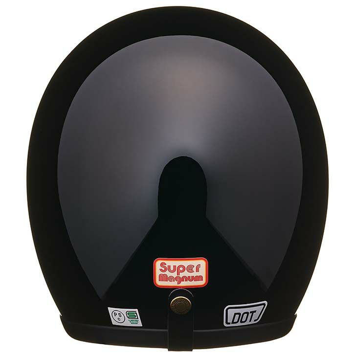 【SUPER MAGNUM STANDARD BLACK】 (スーパーマグナム スタンダード ブラック) ビンテージヘルメットの名作『500-TX』を参考に、『より目深にかぶれて、より小さく見えるシェル』を開発しました。 日本人体型にベストマッチさせた『たまご型』のスリムシェイプが最大の特徴。 クラシカルな雰囲気と、バランスの良い一体感が得られます。 ・標準サイズは、57~58cm (M/Lサイズ、FREEサイズ、相当) ・頭囲55~56cmの方は、 別売りの Sサイズ内装セット ・頭囲53~54cmの方は、 別売りの XSサイズ内装セット をお求めください。 ※帽体はSG規格とDOT規格に適合しております。 あご紐ベルトは、Dリング固定式です。 後頭部にはゴーグルストッパーも装備しております。 お気に入りのサングラスやバイザー、汎用ゴーグルや各シールドなど幅広いスタイルを楽しめます。 DOTマークの仕様変更により、後頭部にDOTマークを埋め込んだタイプをお送りする場合がございます。 その場合は画像のように後頭部についているSuper MagnumシールとDOTシールは貼付ございません。 こちらはお選びいただく事ができませんので、何卒ご了承ください。 画像の色や質感はできる限り実物に近くなるように努めておりますが お使いの環境(モニター、携帯の機種等)により異なる場合がございます。 ・TTゴーグルモデルAの販売ページ ・バブルシールドの販売ページ ・フリップアップシールドの販売ページ ・サイズ調整スポンジの販売ページ ・Sサイズ内装セットの販売ページ ・XSサイズ内装セットの販売ページ