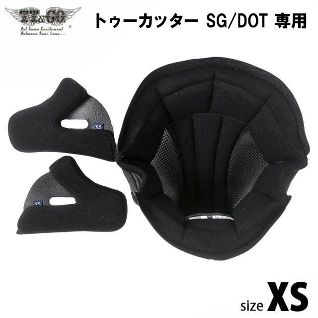 【XSサイズ内装セット トゥーカッター SG/DOT 専用】 頭囲53~54cmの方にオススメなXSサイズ内装です。 既存の内装を取り外し、付け替えます。 チークパッドは左右があります。 内装の脱着方法はこちら 【レザーリムショットご購入の場合】 ストラップベルトが太くなるため、内装の脱着にコツを要します。 一緒に購入された場合のみ、弊社にてXSサイズ内装へ取替えサービスを行い出荷致します。 同梱される内装は標準サイズとなりますので、ご注意ください。 もし、取付けを希望されない場合は、お手数ですがご一報ください。 また、他のモデルでもご指示頂ければ取替えサービスを行っております。
