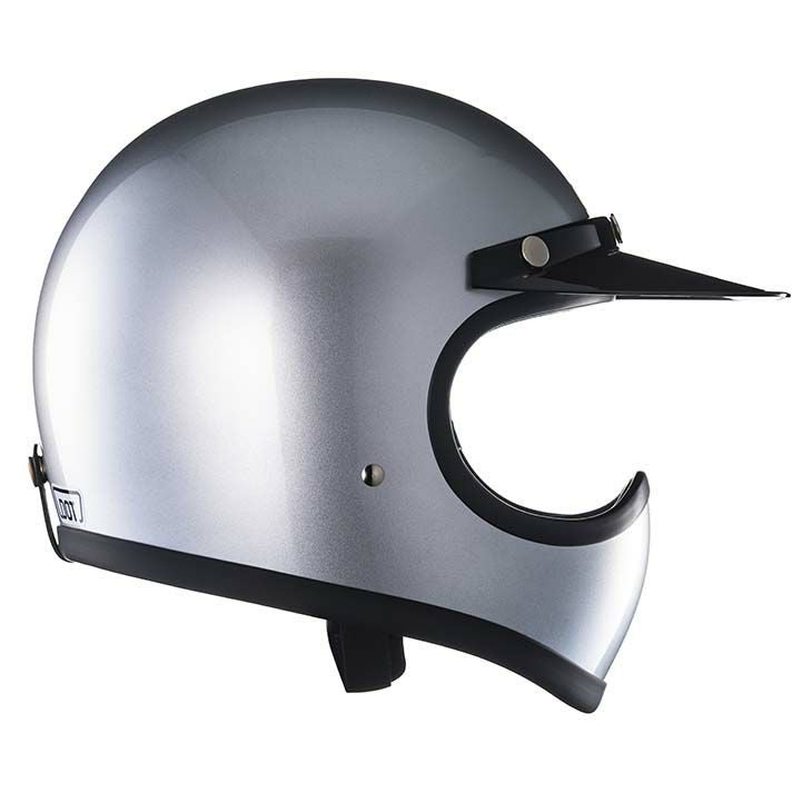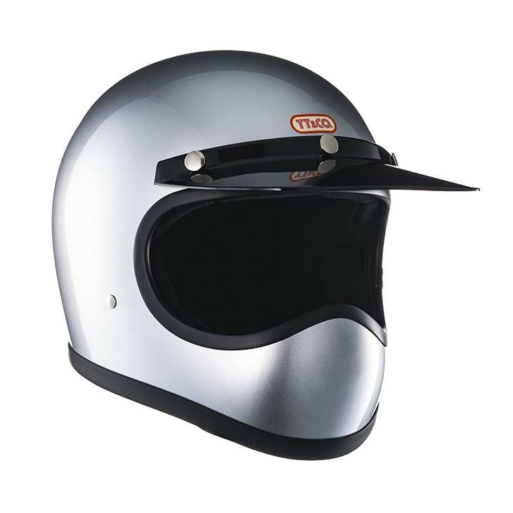【TOECUTTER SG/DOT STANDARD SILVER METALLIC】 (トゥーカッター SG/DOT スタンダード シルバーメタリック) ビンテージスタイルのフルフェイスヘルメット。 3D設計のシェルは乗車用規格で最小サイズのスモールフルフェイスヘルメットです。 日本人の頭に合わせた内装と、重量1.2キログラムという軽量化を行い、快適なかぶり心地を実現。 ・標準サイズは、58~59cm (M/Lサイズ、FREEサイズ、相当) ・頭囲53~54cmの方は、 別売りの XSサイズ内装セット ・頭囲55~56cmの方は、 別売りの Sサイズ内装セット ・頭囲56~57cmの方は、 別売りの チークパッドSサイズ、サイズ調整スポンジ ・頬回りがきつい方は、 別売りの チークパッド XLサイズ をお求めください。 ※帽体はSG規格とDOT規格に適合しております。 同色の専用バイザーを付属し、後頭部にはゴーグル留めを装備しました。 (シルバーメタリックはブラックバイザーを付属) 専用バイザーとシェルのカラーは完全には一致しておりません。 画像の色や質感はできる限り実物に近くなるように努めておりますが お使いの環境(モニター、携帯の機種等)により異なる場合がございます。 <トゥーカッター 専用ゴーグル同時購入限定価格> トゥーカッター(革物、グラフィック含む)とトゥーカッター 専用ゴーグル同時購入の場合のみ、9,702円(税込)で販売致します。 このまま13,860円(税込)で購入頂き、受注確認後に弊社にて価格修正を行います。 ・トゥーカッター専用ゴーグルの販売ページ ・TTゴーグルモデルAの販売ページ ・仕様変更専用ダブルストラップの販売ページ ・バブルシールドの販売ページ ・フリップアップシールドの販売ページ ・チークパッドの販売ページ ・サイズ調整スポンジの販売ページ ・Sサイズ内装セットの販売ページ ・XSサイズ内装セットの販売ページ