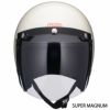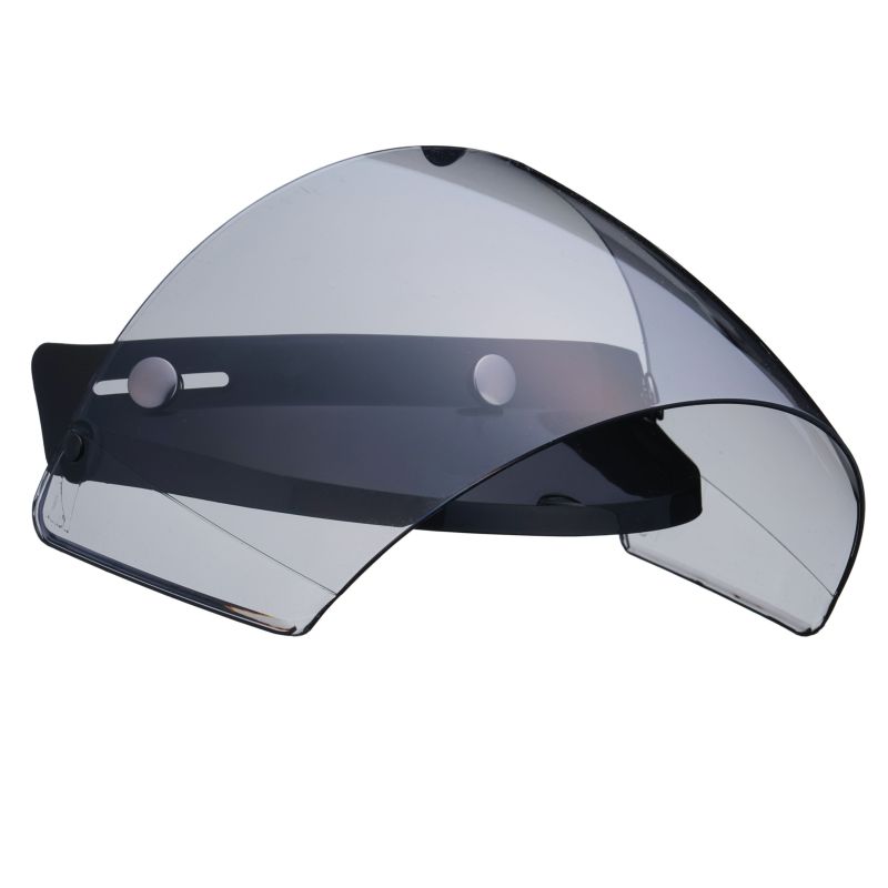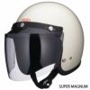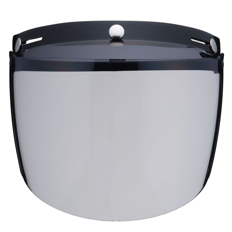 【FLIP UP SHIELD LIGHT SMOKE】 (フリップアップシールド ライトスモーク) バイザー付フリップアップシールド スーパーマグナム、トゥーカッターに取り付け可能です。 レザーリムショット、ヴィンテージレザートリム、シリアスVL、シリアスRS、500-TX、への取り付けは不可となります。 その他、一般的なSG規格へルメットに対応します。 ただし、弊社ヘルメット以外に取り付ける場合、スナップの相性により外れやすい場合がございます。 レンズには ・UVカット ・傷がつきにくい、アンチスクラッチ の各表面処理が施されています。 バイザーは未塗装品の為、樹脂表面に若干のシミ、傷、汚れ、があります。 予めご了承下さい。 シールドがバイザーよりも下がらないようにする<ストッパー機構>がありますが、全閉時に上がらないようにする<ロック機構>はありません。 取付け用のスナップボタンは、安全上とてもかたい仕様になっています。 3点ともしっかりと取付け下さい。 しっかり取付け出来ていても、後方確認時など、突然の風の巻き込みにより、脱落してしまうことがあります。 ヘルメットから取り外す際は、マイナスドライバーなどを使い、接合部分をこじる様にして取り外してください。 引っ張って外すと、スナップボタンが破損することがあります。 画像の色や質感はできる限り実物に近くなるように努めておりますが お使いの環境(モニター、携帯の機種等)により異なる場合がございます。