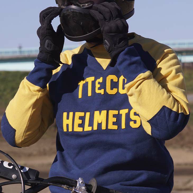 【VINTAGE RACER JERSEY Navy】 (ヴィンテージレーサージャージ ネイビー) VMXシーンを意識したヴィンテージスタイルジャージ。 ボディーはコットン100%。生地の厚み15oz。 タオルの様なパイル状に編み込むことで、 空気を含み、快適な着心地を実現。 <<サイズ>> Sサイズ 着丈62.0cm 身幅53.0cm 袖丈84.0cm Mサイズ 着丈68.0cm 身幅56.0cm 袖丈87.0cm Lサイズ 着丈70.5cm 身幅59.0cm 袖丈90.0cm XLサイズ 着丈72.0cm 身幅62.0cm 袖丈93.0cm インナープロテクターの装着を考慮し、身幅を広めに設定しました。 多少の誤差はご了承ください。 ※装着画像はサンプル品の為、エルボーパッドの位置が実際とは異なります。 体系、体格によってエルボーパッドの位置が正しい位置に来ない場合があります。ご理解の上、ご購入ください。 画像の色や質感はできる限り実物に近くなるように努めておりますが お使いの環境(モニター、携帯の機種等)により異なる場合がございます。