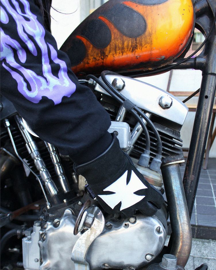 25_JOINT Leather Gloves〔Bk-S/Bk/Wh〕 【COLOR】 Black Leather/Black Suede - White 【SiZE】 M : 指が細めの男性 L : 一般男性 XL : 手の大きな男性 【詳細】 ■Yellow Gloveさんとのコラボアイテムになります。 ■馴染みの良いカウハイド100%(牛革)を使用したレザーグローブ。 ※今期はブラックスエードとのコンビタイプになります! ■冬以外の3シーズンを意識し、裏地無しで制作しています。 【Miyagawa SPEAKS】 チョッパーグローブ! モデル名〔JOINT〕になります。 60'sバイカームービーに登場する低めのワイドロボハンに2機掛けメーターが印象的なパンチョッパー! そのハンドルを握る手には。。。 画像の色や質感はできる限り実物に近くなるように努めておりますが お使いの環境(モニター、携帯の機種等)により異なる場合がございます。